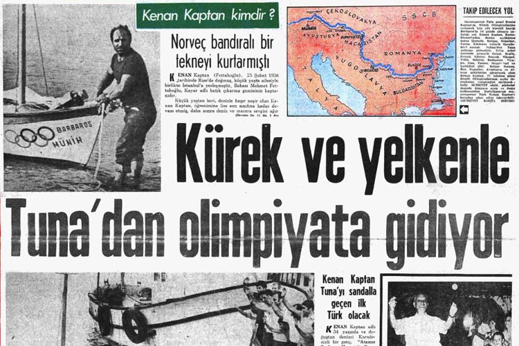 Kenan Kaptan adlı 34 yaşında ve doğuştan denizci Karadenizli bir genç, “Atamız Barbaros Hayrettin Paşa, kalyonla Akdeniz’i fethetmişti. Ben de kayığımla Münih seferini gerçekleştireceğim diyerek “Barbaros” adlı teknesiyle denize açılmıştır.Karadeniz’den yelken açarak, zaman zaman da kürek çekerek Tuna’ya geçeceğini bildiren Kenan Kaptan, “Yolculuk 26 Ağustos’ta başlayıp 11 Eylül’de bitecek olan Münih Olimpiyatlarında sona erecek” demiştir.