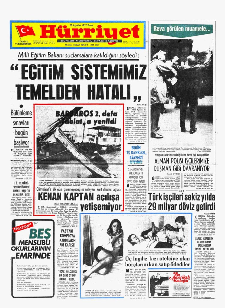 Hürriyet Gazetesi’nin 25 Ağustos 1972