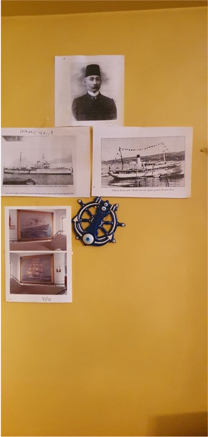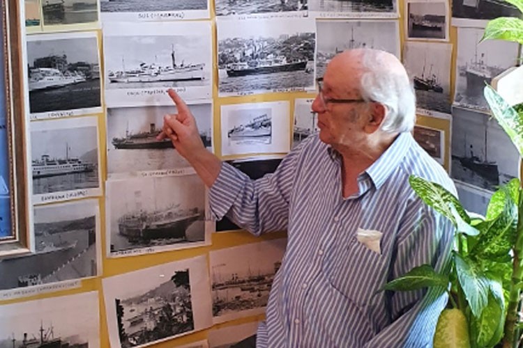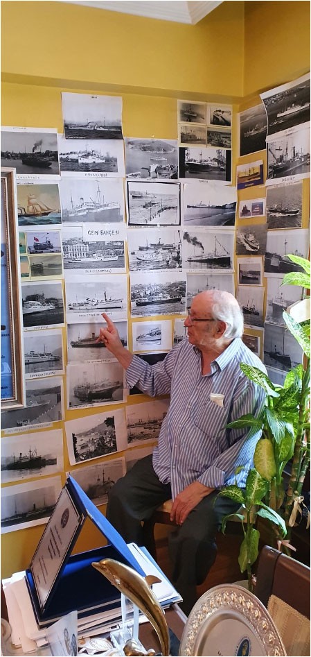 – Bu köşede ise Kurtuluş Savaşı sırasında Rusya’dan silah ve cephane taşıyan tüm filonun bir fotoğrafı var. Kapt. Levent Akson resmi yaptırmış ve hediye etmiş. Filodaki gemilerin tek tek ismini çıkaran Refik Ağabey, gemilerin fotoğraflarını buldukça duvardaki yerine yerleştiriyor.