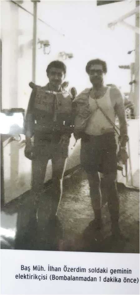 Gemiye atılan ilk bombadan sonra ikinci bir bomba da 1-2 dakika sonra iğnecikten yani tam kıçtan giriyor. Üçüncü bir bomba gelir de bütün gemiyi havaya uçurur korkusuyla bu 3-5 uyanık can korkusu ile filikaya atlayıp gemiden acele uzaklaşmış olduklarını sanıyorum. Denizciliğe hiç yakışmayan bir davranıştı.