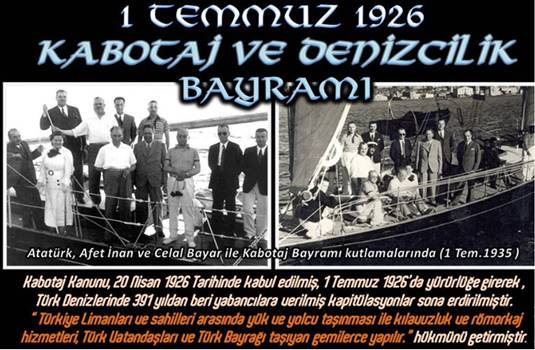 Bu tarih 1935 yılından itibaren Kabotaj Bayramı olarak kutlanmaya başlandı. 2007tarihinde kabotaj kelimesine denizcilik kelimesi de eklenerek bayramın adı Denizcilik ve Kabotaj Bayramı olmuştur.