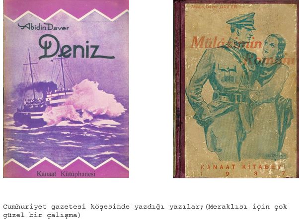 - Daver, Abidin, “TBDM-Denizde Türkler”, Tefrika No:62, Cumhuriyet, 12 Ocak 1939, s.2.