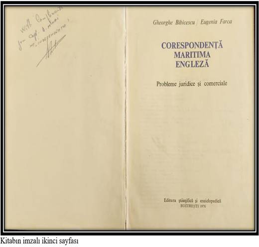Ancak bu kitaplardan bir tanesinin özellikle altını çizdi ve diğerlerinden ayrı bir şekilde verdi. Kitabının hikayesini dinlediğimde, “İşte denizcilik tarihine yeni bir not” diye düşünmeden edemedim. Üzeri mavi renkli bez ciltle kaplanmış Romence dilindeki kitabı özel yapan, İstanbul Boğazı’nda 15 Kasım 1979’da yaşanan ve aradan geçen yıllara rağmen hiç unutulmayan İndependenta faciasının baş aktörlerinden birine ait olması. Ancak kitabın ismi de , içeriği de çok enterasan. “CORESPONDENTA MARITIMA ENGLEZA” yani “İngilizce Denizcilik Yazışmaları”. Konusu ise hukuki ve ticari meseleler.