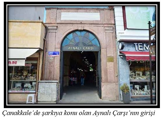 Bir not: Türküde Çanakkale içinde ismi geçen bir çarşı var: Aynalı Çarşı. Çanakkale merkezindeki Aynalı Çarşı’nın yapımı ile ilgili kesin bilgiler olmamakla beraber II. Abdülhamid döneminde, 1889’da Çanakkale’nin önde gelen Yahudi ailelerinden Halyo’lar tarafından yaptırıldığı bilinmektedir. Bu çarşı İstanbul’daki Mısır Çarşısı’nın küçük bir minyatür örneğidir. Çarşıda sanılanın aksine evlerde kullanılan aynalar değil atlara takılan ve at gözlüğü denilen aynalar satılmaktaydı. Gelibolu çıkarması sırasında Queen Elizabeth zırhlısının Çanakkale çevresindeki Türk tabyalarını bombaladığı sırada bu çarşının yıkıldığı daha sonra da onarıldığı bilinmektedir. Ancak restorasyondan sonra çarşı girişlerine büyük boy aynalar koymuşlar!