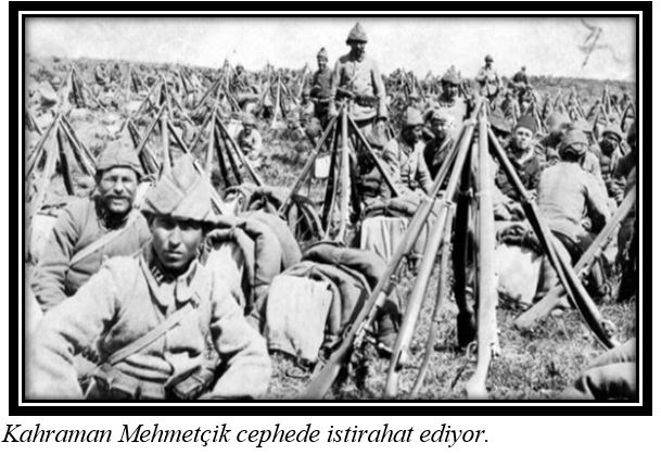 Bize; ‘Zamanı gelince cephede yapılacak vatan hizmetinin mektepte yapılan hizmetten kutsi olduğunu’ söyledi. Birkaç günden beri Çanakkale sokaklarından askerler geçiyor. “Çanakkale içinde Aynalıçarşı, Anne ben gidiyorum düşmana karşı” şarkısını söylüyorlar. At üstünde zabitler, top arabaları, mekkare ve deve kervanları sokağımızı doldurdu.