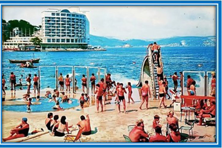 Gösteri sabah 09.30 da başlayıp 12.00 civarında bitiyordu. Pazartesi – Perşembe 4 gün hocalar geldiler. Biz de gösteriye devam ettik. Öğle yemeğini okulda yedikten sonra Ruhi Hoca emeğimizin karşılığı olarak bizi arabasına alır doğru Tarabya Oteli Plajı’na götürürdü.